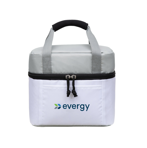 sku: Evgy-0342For your next giveaway, choose an item that is cool as your brand! This cooler bag is made of 210D polyester, measures 8.75"L x 7.5"H x 6"W and is PVC free and phthalate free. Features include a 9 can capacity, dual zippered opening to the main compartment, an interior zippered mesh compartment for ice packs or snacks, a plush neoprene top grab handle, front slash pocket and PEVA heat-sealed lining. Pair it with the Kyoto Bento Lunch Box or the Osaka Bento Lunch Box. 6" W x 7.5" H x 8.75" L