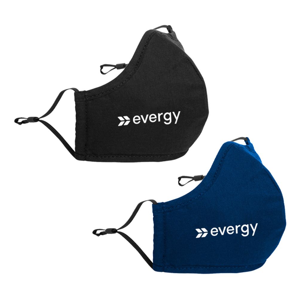 - Reusable face mask made of 2 layers of material. 100% Cotton Outer Layer, 96% Polyester/4% Spandex Inner Layer